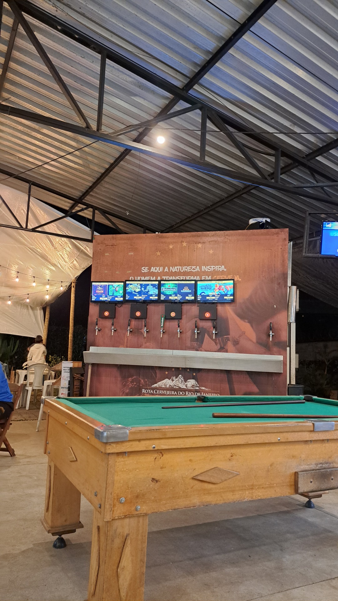 A grande atração é um contêiner com várias torneiras, onde o cliente escolhe a cerveja e paga conforme o consumo. O ambiente é agradável e arejado, ideal para comer e conversar com os amigos.